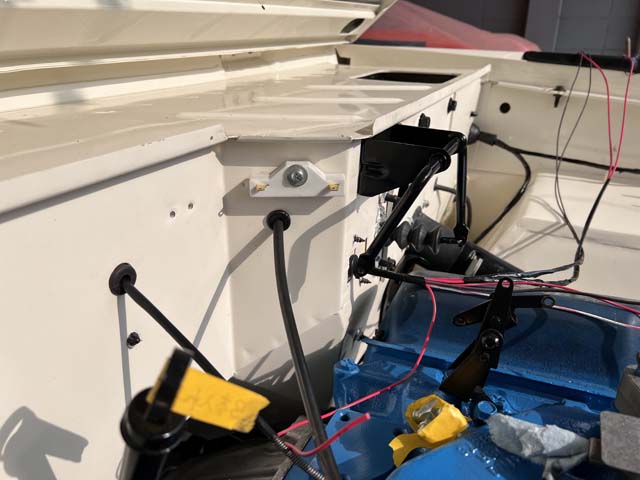 レイアウトが決まったら、フロントグリルに灯火類の取り付け開始です。ターンシグナルの取り付けとハーネスの結線が完了しました。
