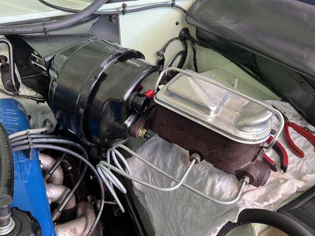 今回のお題は、エンジンオイル交換とブレーキマスターシリンダー周りのパーツの交換と点検でした。ブレーキ回り点検中の図。