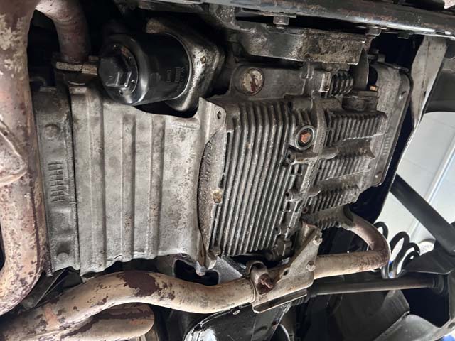 オートマチックトランスミッション、そしてディファレンシャルカバーまわりはなかなかのオイリー具合。要クリーニングです。