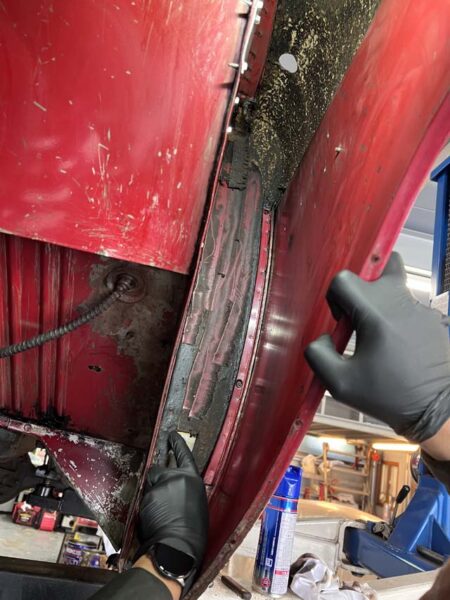 リアフェンダー内側、そしてホイールハウスもだいぶ作業が進み、ボディパネルが見えるまでになりました。