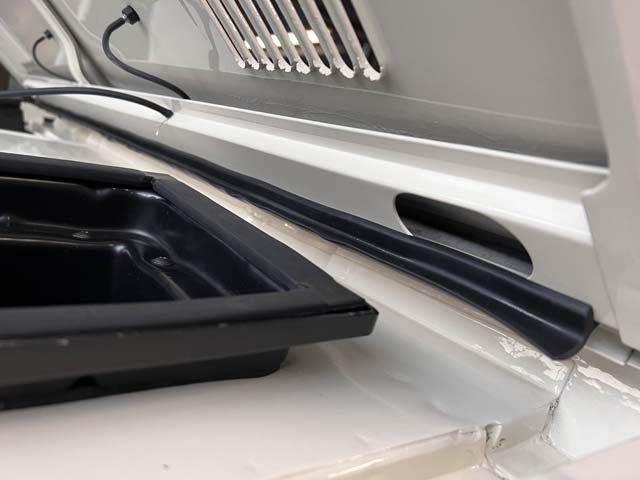 外部からの水の侵入を防ぐベントシールを、ドライバサイド、パッセンジャーサイドのベントボックスに装着。専用の接着剤で貼り付けました。