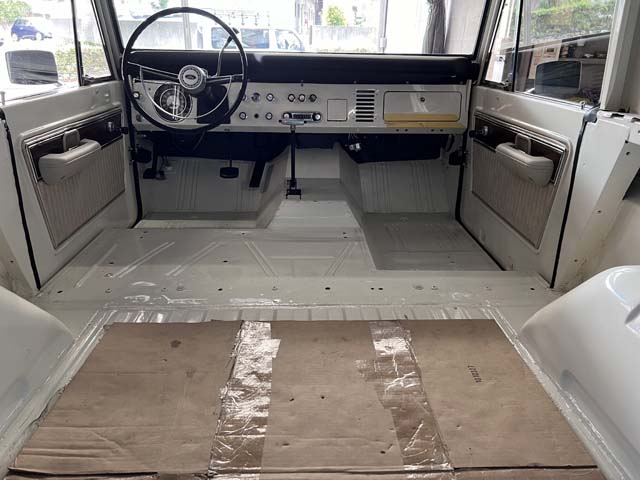 いよいよ、Broncoのフロアにカーペットを敷いていきます。