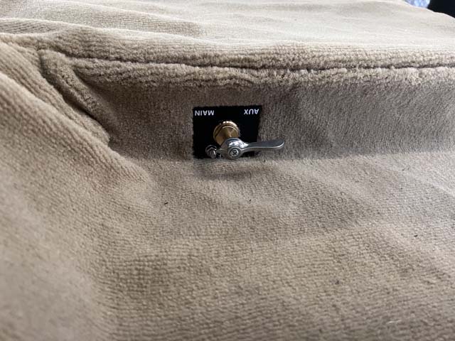 カーペットの位置合わせ&穴開けが完了してフューエルタンクセレクターレバーも無事に貫通。フューエルタンクインジケータープレートの取り付けも完了しました。