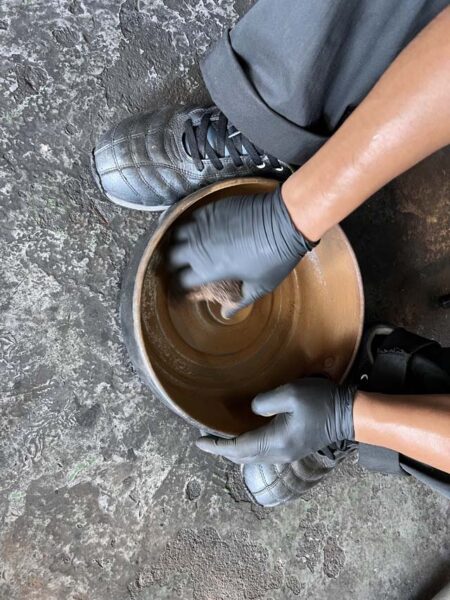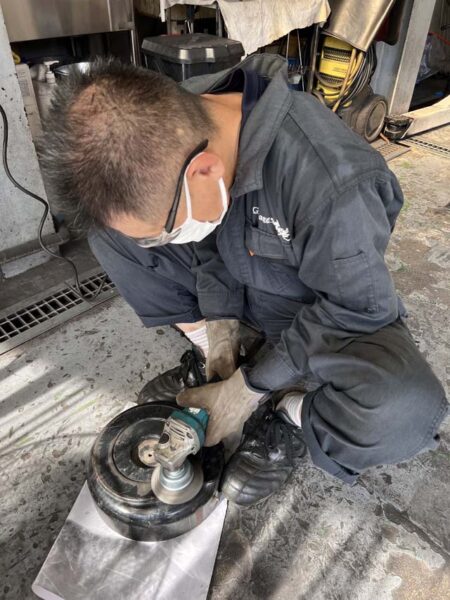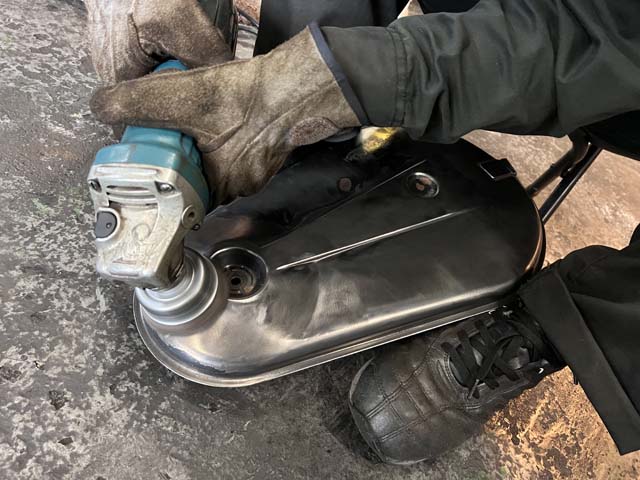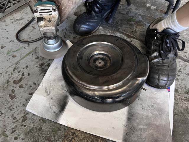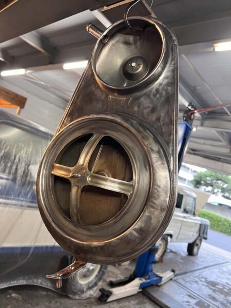 エアフィルターが収まる部分も同様に磨きをかけます。こちらは内側の錆が出ている部分も綺麗に汚れを落として使用します。