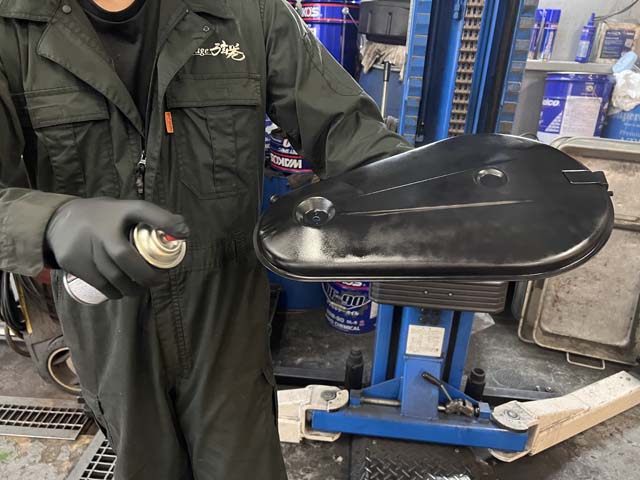 下地処理の乾燥を待って、本塗りを開始。艶やかで深みのあるブラックを目指して、数回に分けて色を塗り重ねていきます。