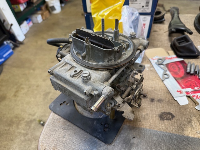 レストア作業の傍ら、今後のプロジェクトで使用するパーツも着実に入手しています。こちらはイヤーマッチングのHOLLEY製4バレルキャブレターです。