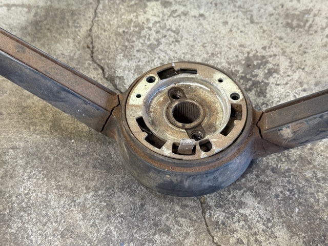 ステアリングセンター部分にクラックが入っていますが、貴重なパーツのため修復して再生します。