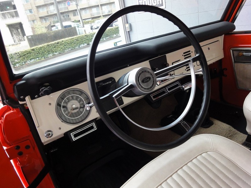 数年前にフレームオフレストアを受け、エクステリア&インテリアともにクリーンな状態を保っている1971 Bronco Sportです。鮮やかなボディカラーCalypso(カリプソ)も目を惹くポイントです!
