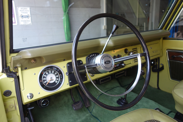 オクラホマからやって来た1974 Bronco Rangerです。ワンオーナーBroncoならではのコンディションを維持していたこの個体、ボディはレンジャーラインを含めオリジナルペイントが残っており、インテリアは使用感こそあるものの43年という時間を感じさせないコンディションを保っていました。”奇跡のコンディション”ともいえるこの個体をベースに、エクステリアはオリジナルの状態を活かし、インテリアは極力オリジナルの素材を残しながらリファインを行いました。Samoa LimeのボディとGreen基調のレンジャートリムがとてもいい雰囲気を作り出しています。