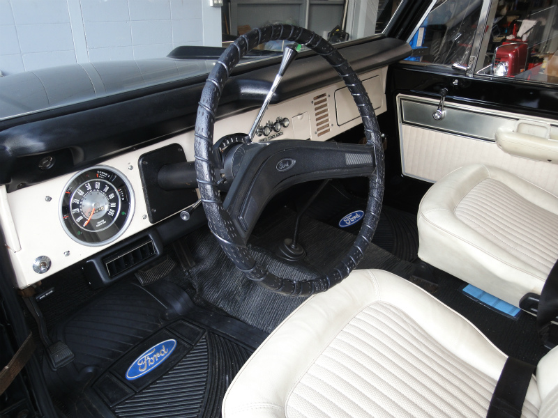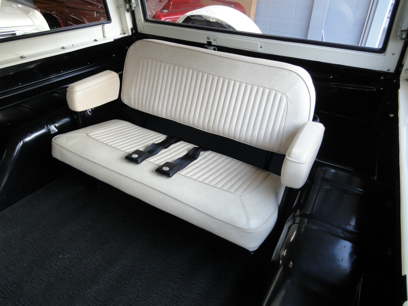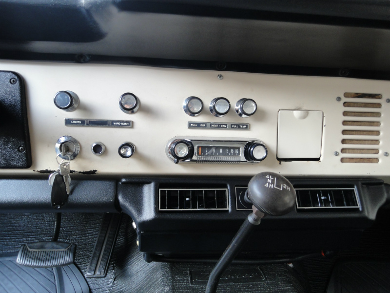 ニューパーツやリビルトーパーツを用いてリフレッシュされた302cu.in.V8エンジンは小気味良い走りが楽しめ、エクステリア&インテリアは基本的にオリジナルのスタイルを尊重したスタイルですが、若干のリフトアップが施され、15インチのアルミホイールに31×10.5Rサイズのタイヤを組み合わせて装着して四駆らしさを程よくアピールしています。