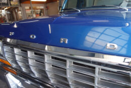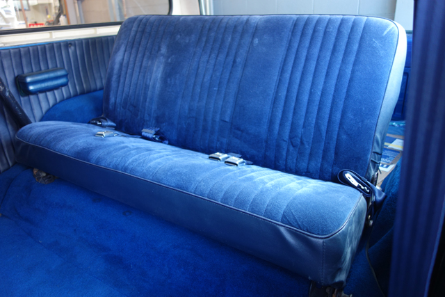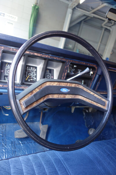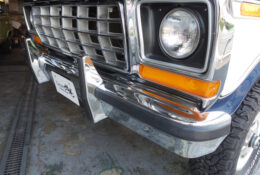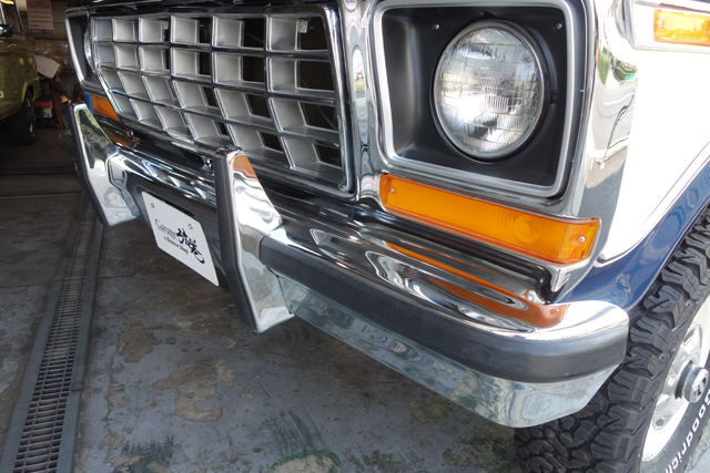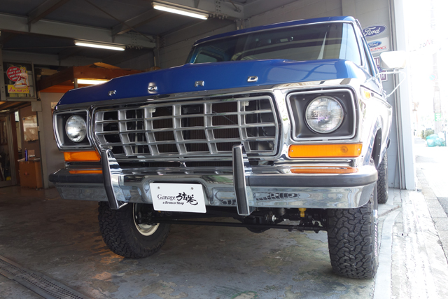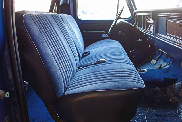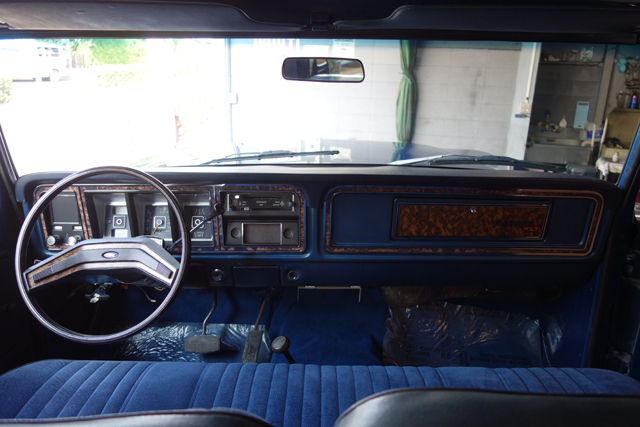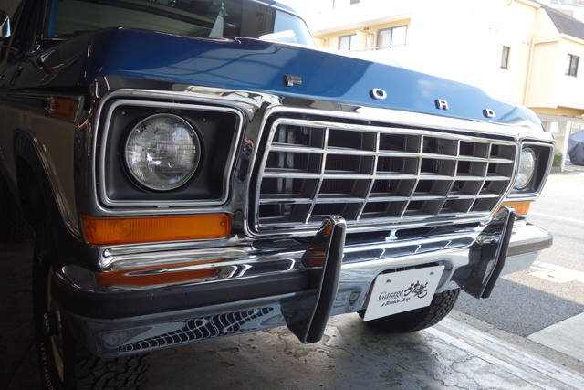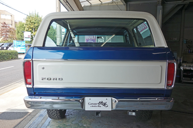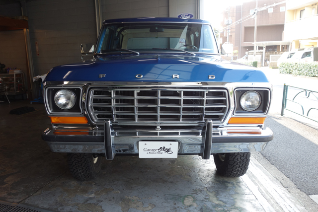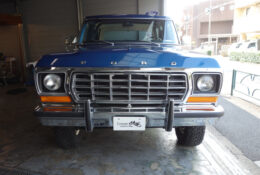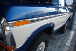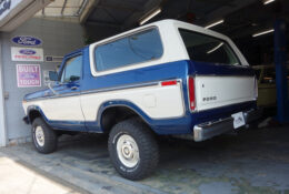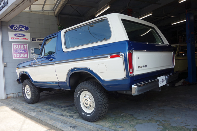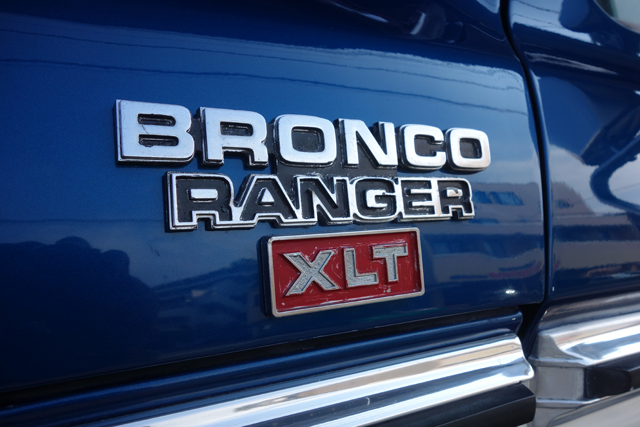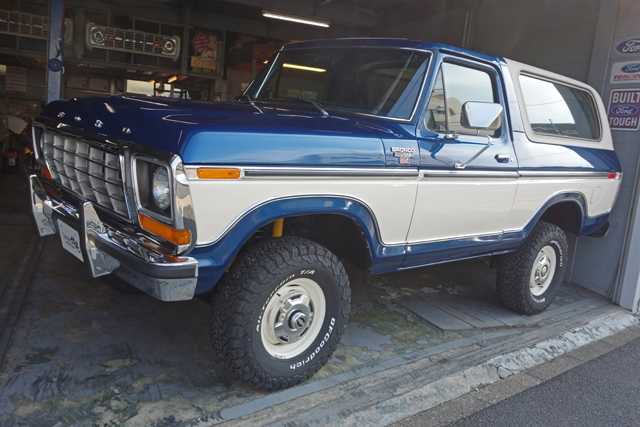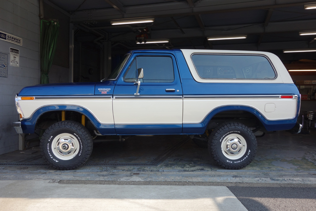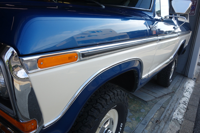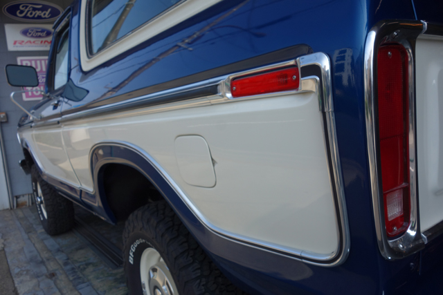 僅か1年間のみの設定となった丸目のフロントマスクを持つ、1978 Bronco Ranger XLTです。エクステリア & インテリア、そして機関系や脚まわりなど、可能な限りオリジナルのスタイルへと戻すべくレストアを行いました。美しいブルーとホワイトの2トーンに塗り分けられたフルサイズボディは迫力があることはもちろんですが、各部にあしらわれているクロームのモールディングやエンブレムなど、優雅さを感じさせる個体でもあります。